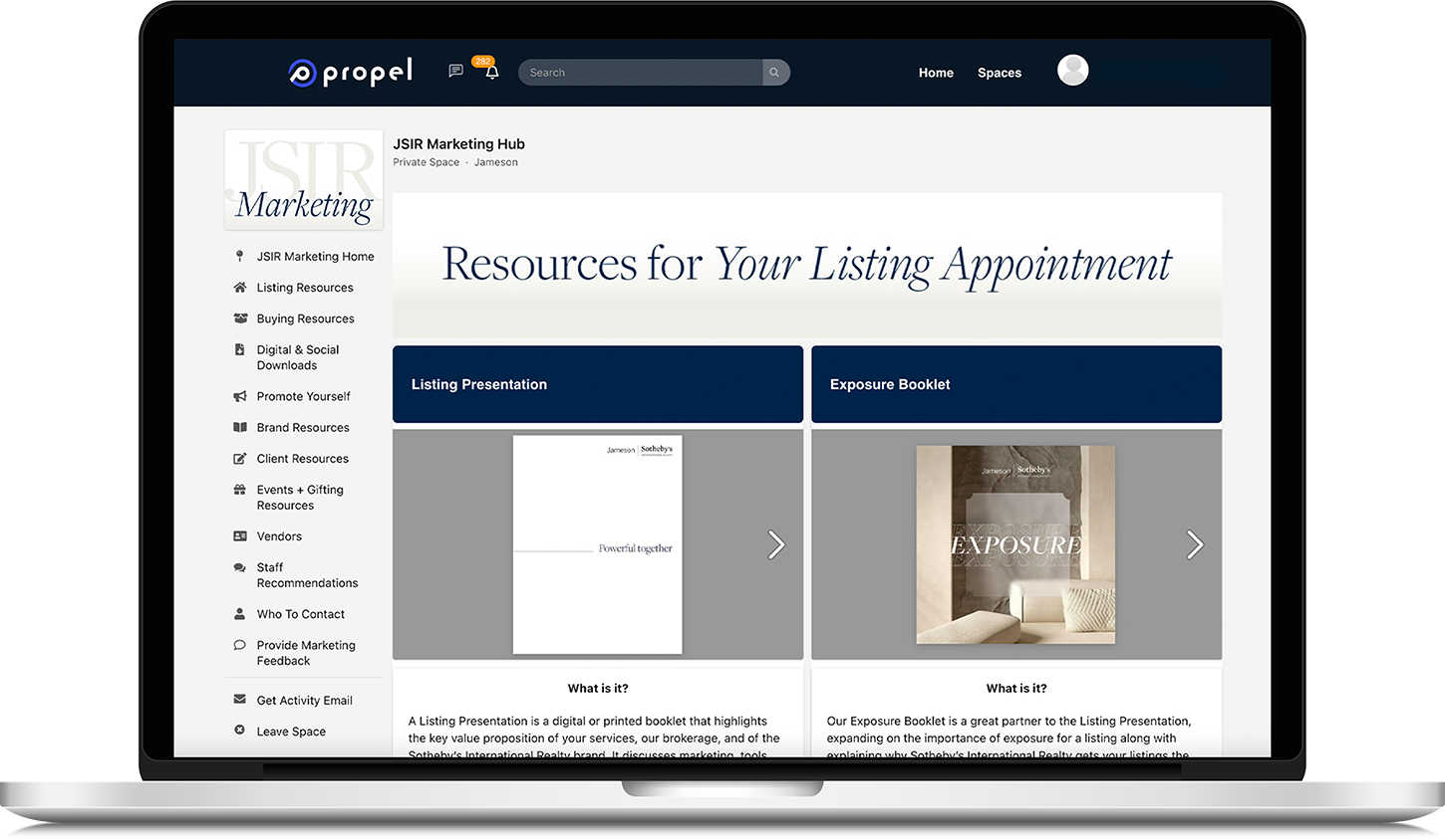 At Jameson Sotheby’s International Realty, we believe our advisors should spend their time building relationships and growing their business, not searching for resources. Our newly launched Marketing Hub showcases all the marketing resources available for your listings and your business promotional needs and are viewable with a click of a button.
